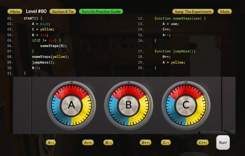 I made this free educational game as part of working with children ages 5-12. However, it can be as an accessible entry point for people at any age who new to coding.Safe Code Trainer focuses on learning to read code, before and separate from learning to write it. I took this approach after noticing how most kids could read above the level they were ready to write. Most traditional approaches learn to read code at the same time they're trying to write it.By learning to follow the non-linear order and variables, students can build a foundation to better understand video tutorials or any example code they find elsewhere.The game builds up gradually, beginning with simple concepts, incrementally mixing in programming-like features and syntax. It's themed as cracking safes, each of which contains a new emoji as a the prize for that level.